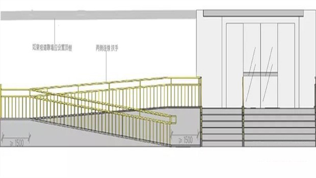 3.輪椅坡道的寬度超過300mm且坡度大于1:20時(shí),應(yīng)在兩側(cè)設(shè)置扶手,坡道與休息平臺的扶手應(yīng)保持連貫,扶手應(yīng)符合規(guī)范;