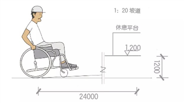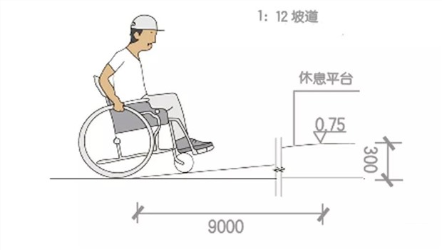 4.輪椅坡道的最大高度和水平長度應(yīng)符合想對應(yīng)比例規(guī)定;