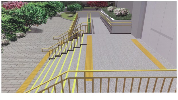 3.同時(shí)設(shè)置臺(tái)階和升降平臺(tái)的出入口宜只應(yīng)用于受場(chǎng)地限制無(wú)法改造坡道的工程;