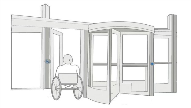 5.建筑物無(wú)障礙出入口的門(mén)廳、過(guò)廳如設(shè)置兩道門(mén),門(mén)扇同時(shí)開(kāi)啟時(shí)兩道門(mén)的間距不應(yīng)小于1.50mm;